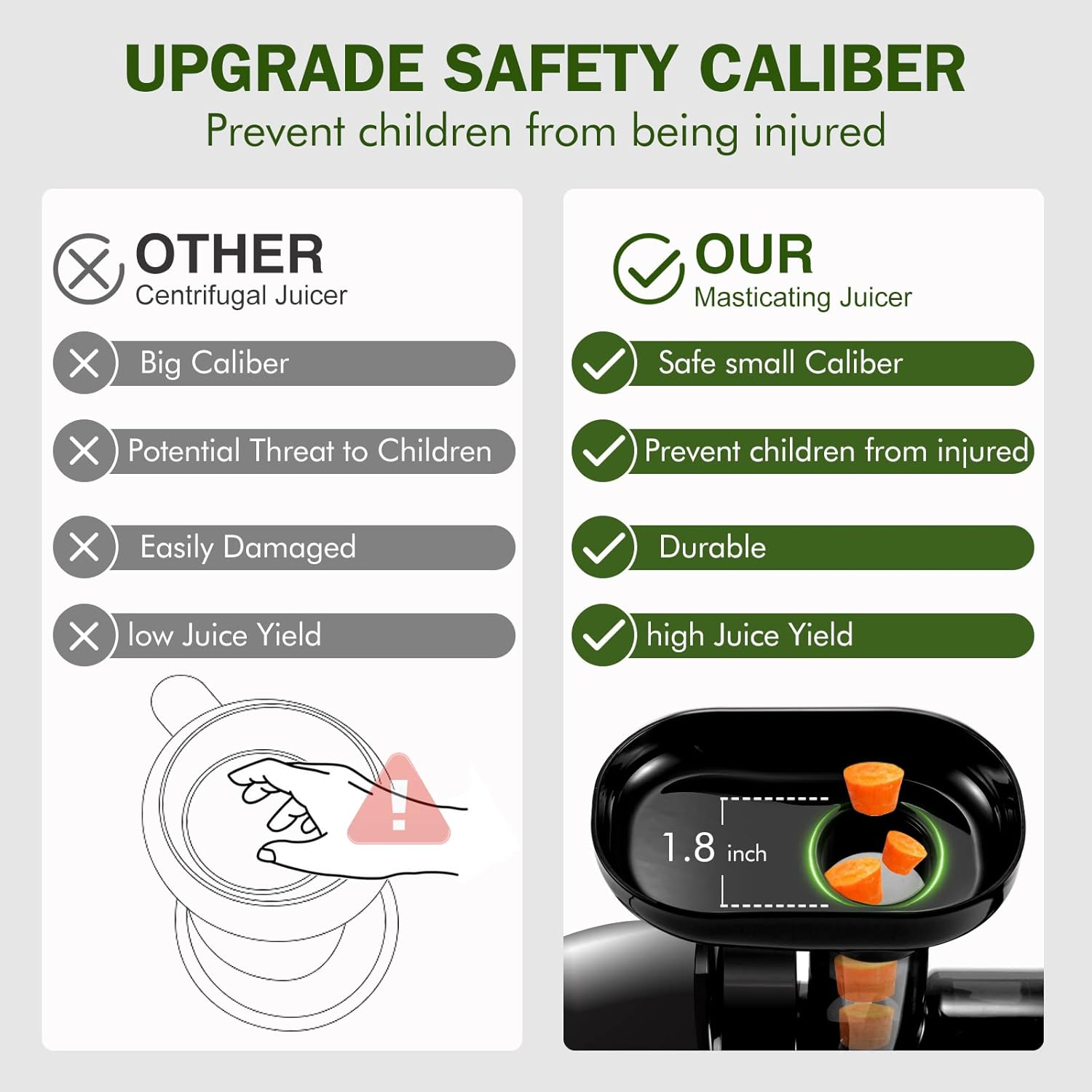 - 【Small Caliber Masticating Juicer】AMZCHEF cold press juicer machines with small feeder chute allows you can remove the seeds when you cutting the fruit to reduce the bitter taste, It can make the juice tastes better. At the same time,slow masticating juicer can prevent children from bring injured during juicing.
