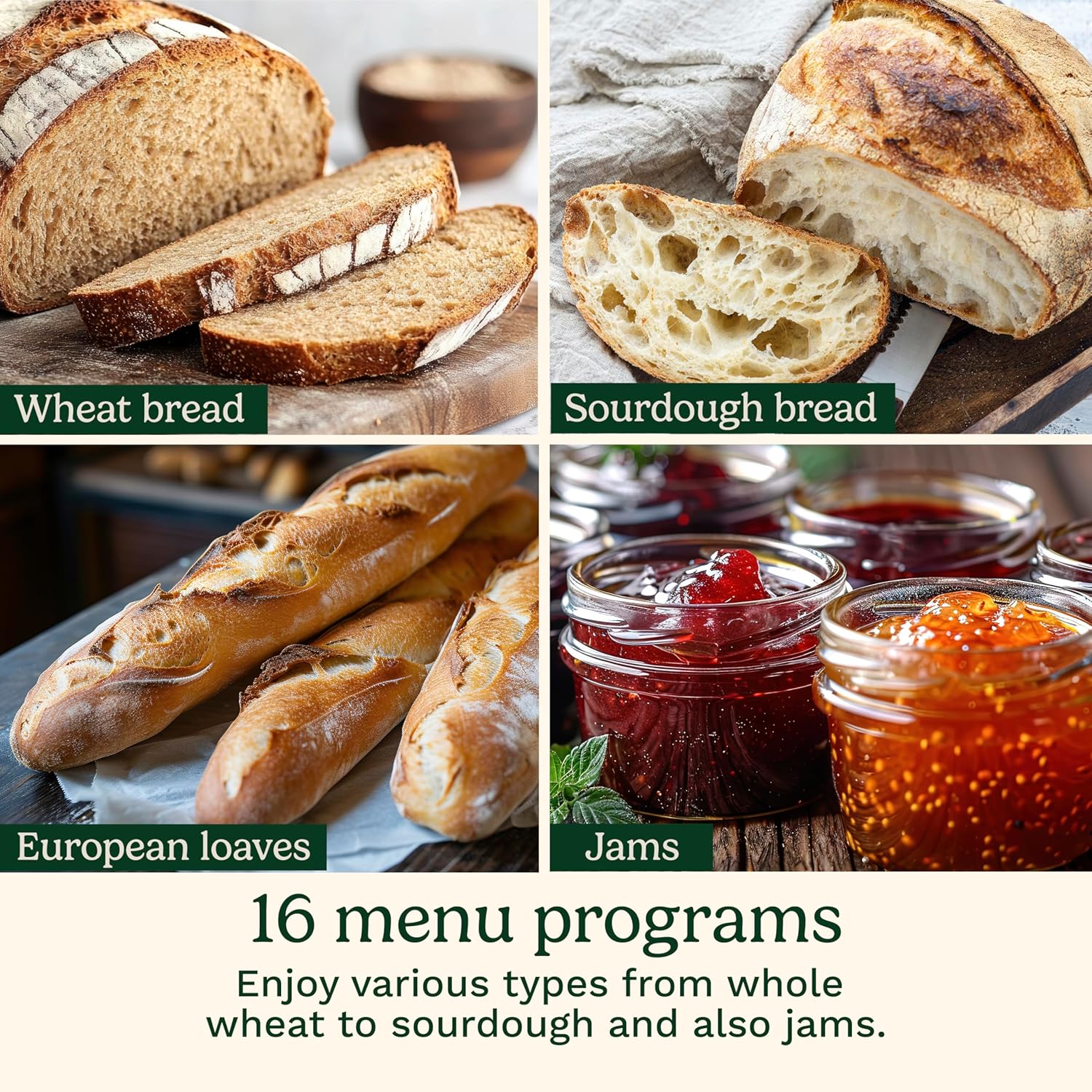 - 16 MENU FEATURES: The Cuisinart Bread Maker Machine offers a wide range of options with its 16 menu programs, allowing you to bake various types of bread and other baked goods.