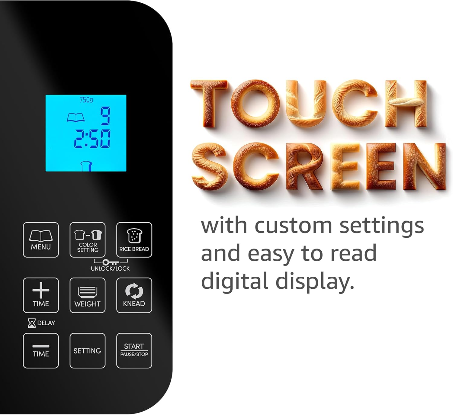 - INCLUDES 19-PROGRAMMED PRESET MENU With capacitive touch controls for a variety of different types of breads from basic white bread to rye or potato bread, pizza dough, yogurt, cake and much more plus a 15-hour delay timer and 60-minute Keep Warm.
