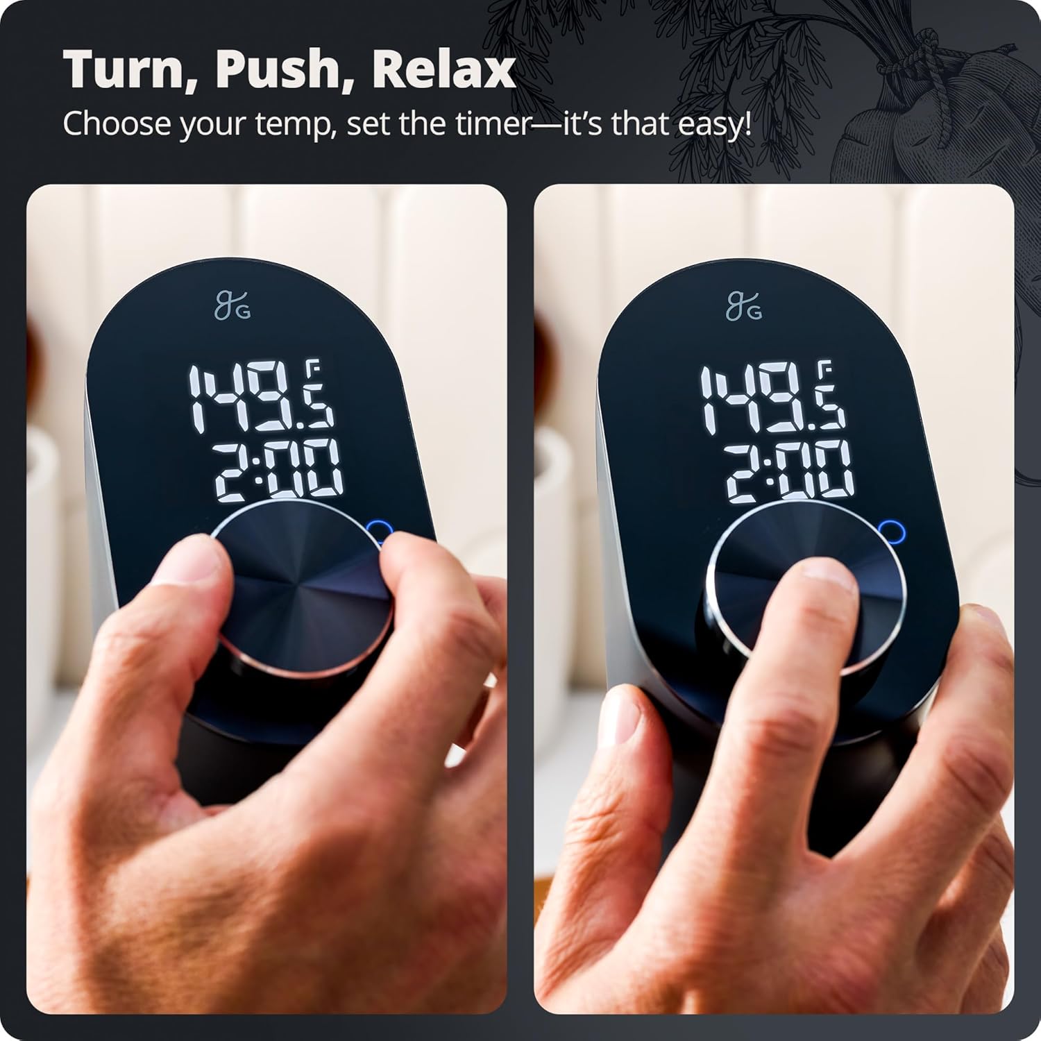 - Intuitive Dial Controls: Press and hold the adjustable dial until “Unit” displays, then turn the dial to switch between Fahrenheit and Celsius and click to lock. Adjust the temperature without affecting the set timer.