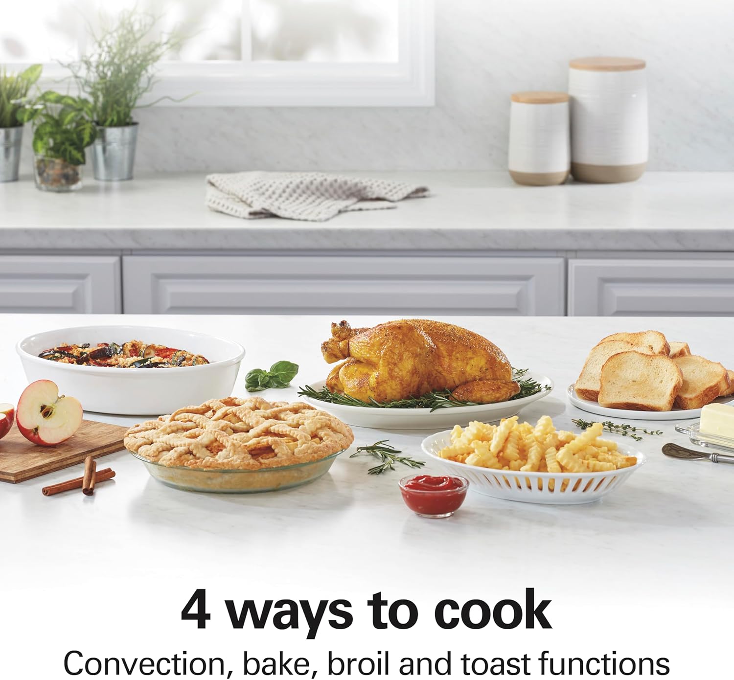 - 4 WAYS TO COOK: This countertop oven has convection, bake, broil and toast functions, plus 2 rack positions and a wide temperature range of 150 to 450ºF. It’s great for everyday tasks like heating up leftovers, broiling chicken breasts and making toast