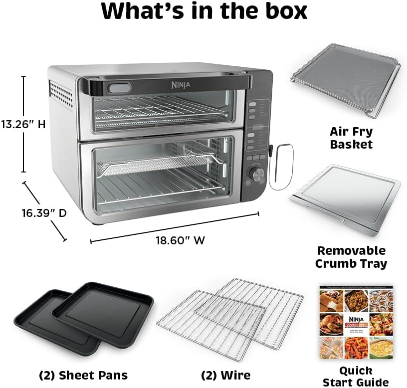 - FAMILY SIZED CAPACITY: Ninja’s Double Oven fits 6 lbs of wings and a 12 in pizza at the same time to feed up to 8 people.
