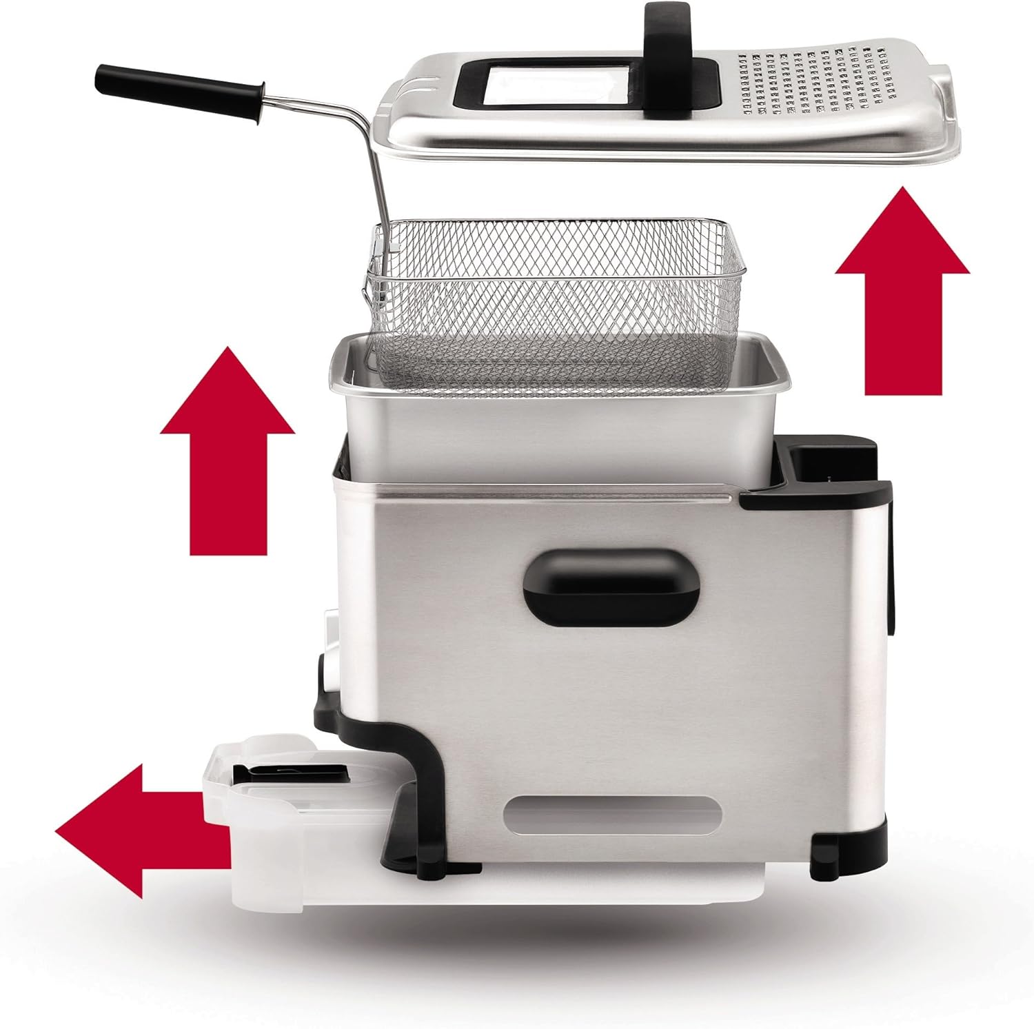- Oil Filtration System: Advanced technology automatically filters and stores oil in a sealed container ensuring easy cleanup and cost savings through reusable oil. Enjoy hassle-free deep frying with this innovative feature.